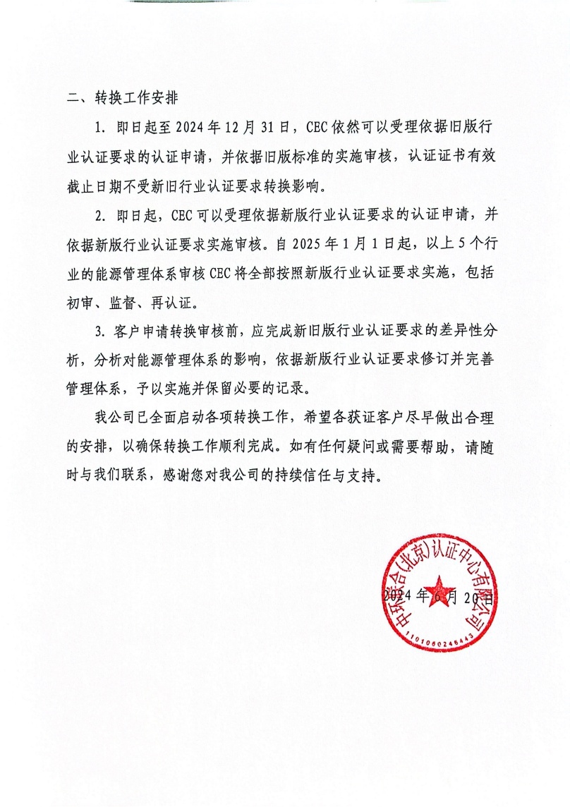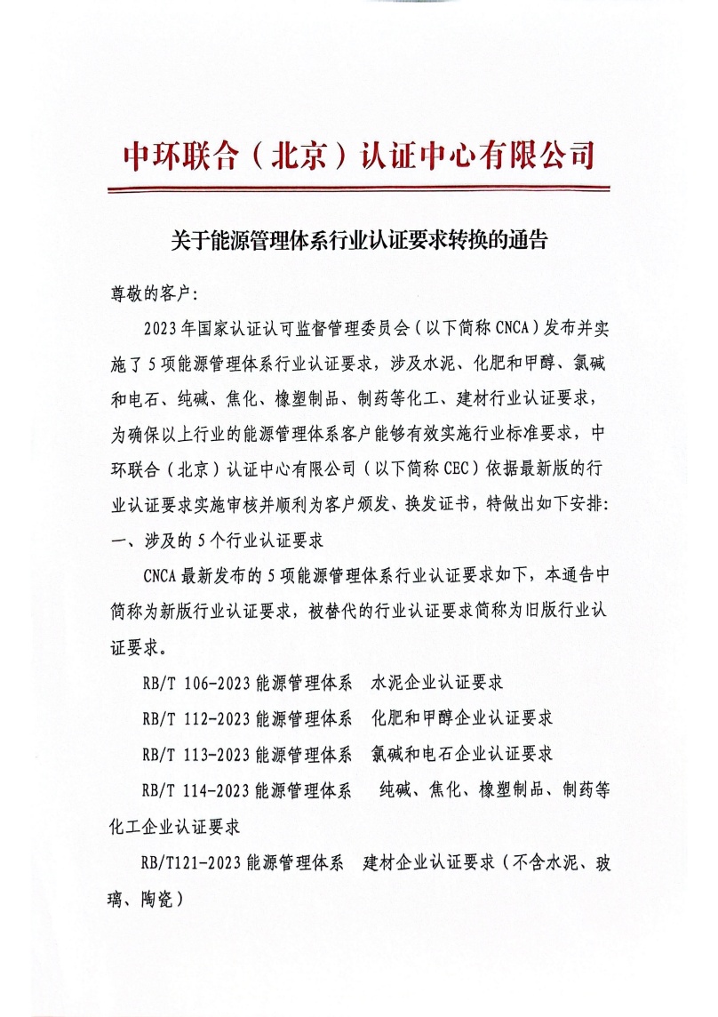 關(guān)于能源管理體系行業(yè)認(rèn)證要求轉(zhuǎn)換的通知