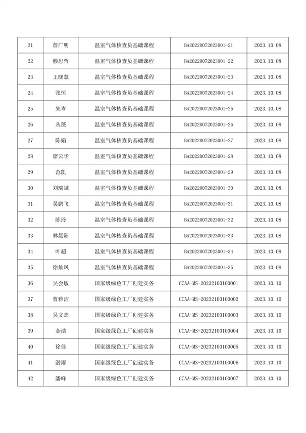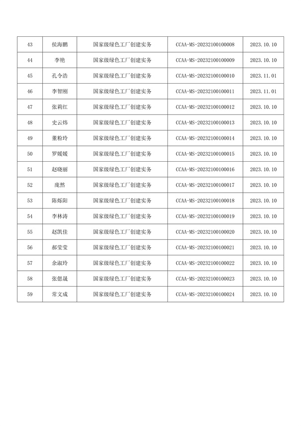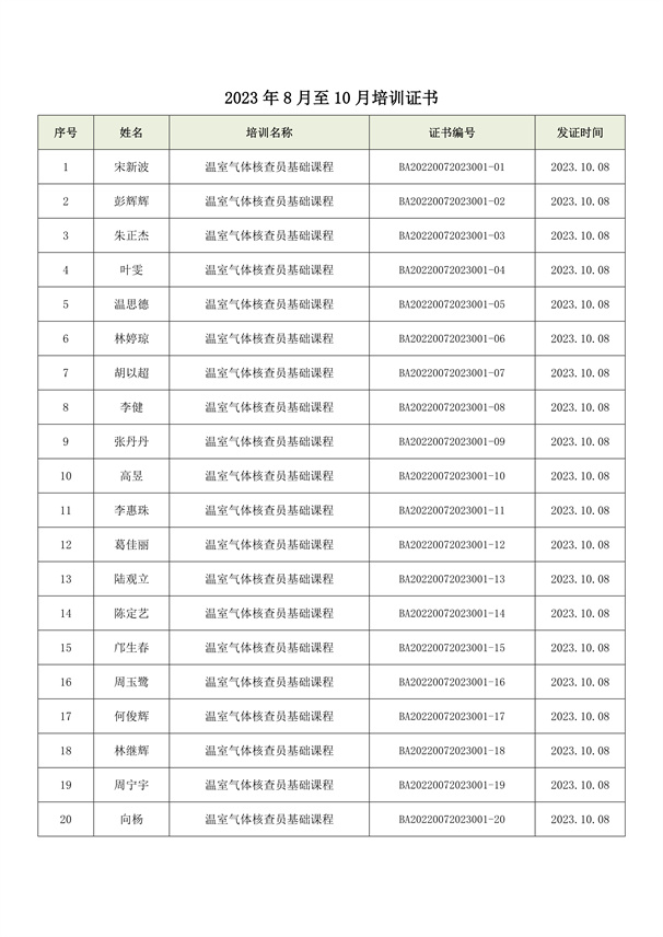 2023年8月至10月培訓(xùn)證書