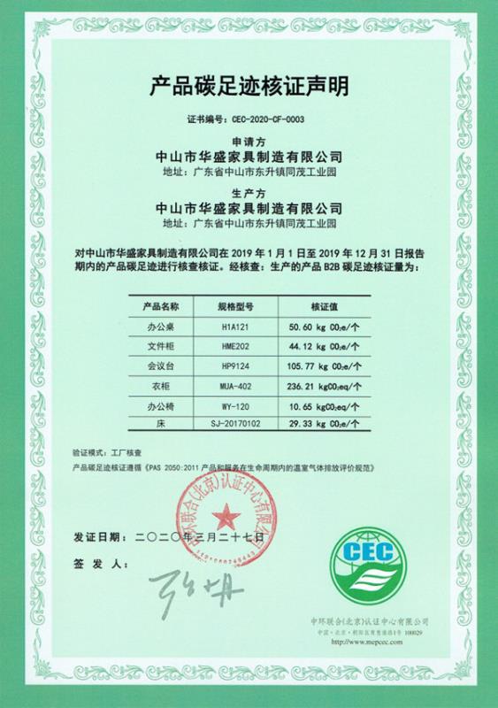 中山市華盛家具制造有限公司 CEC-2020-CF-0003