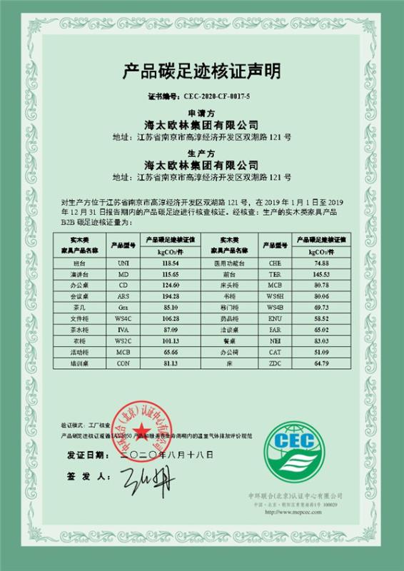 欄目:產品碳足跡核證聲明