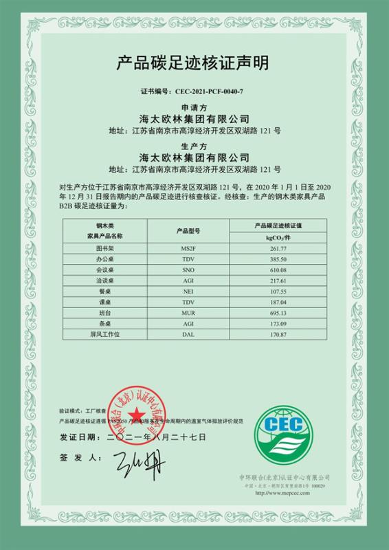 海太歐林集團有限公司-產品碳足跡證書-CEC-2021-PCF-0040-7-鋼木類家具
