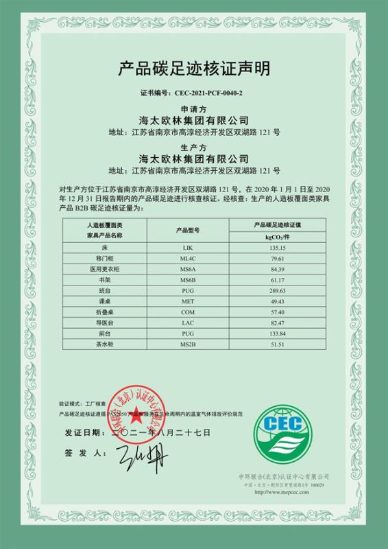 海太歐林集團有限公司-產品碳足跡證書-CEC-2021-PCF-0040-2-人造板覆面類家具