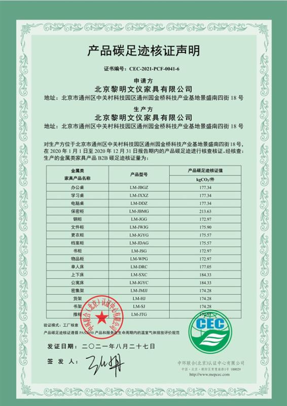 下一篇:北京黎明文儀家具有限公司-產(chǎn)品碳足跡證書(shū)-CEC-2021-PCF-0041-5-軟體類家具