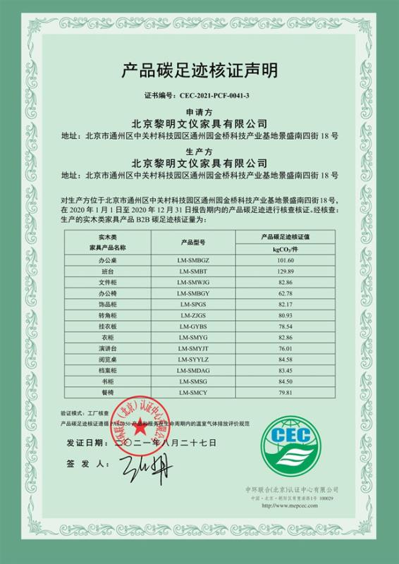下一篇:北京黎明文儀家具有限公司-產品碳足跡證書-CEC-2021-PCF-0041-2-人造板涂飾類家具