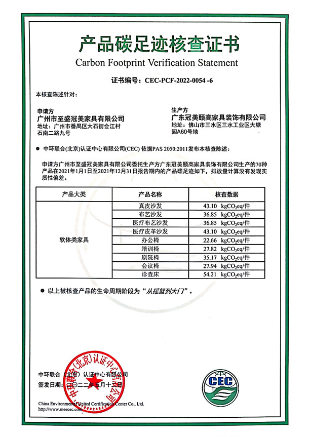 廣東冠美頤高家具裝飾有限公司-CEC-PCF-2022-0054-6-軟體類家具