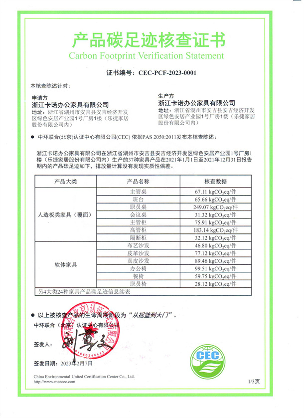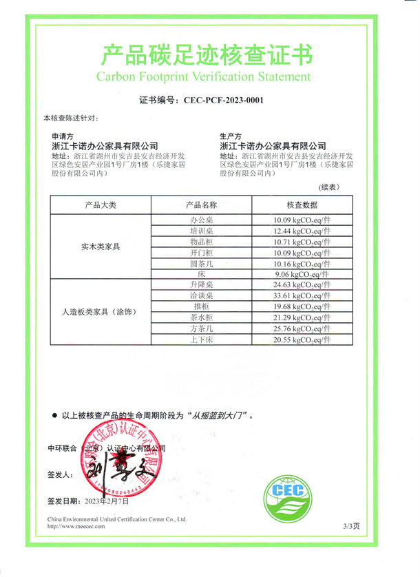 浙江卡諾辦公家具有限公司-CEC-PCF-2023-0001