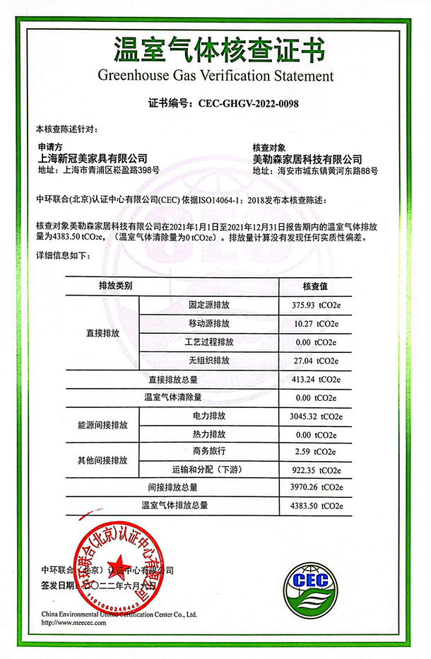 美勒森家居科技有限公司-CEC-GHGV-2022-0098-溫室氣體核查證書