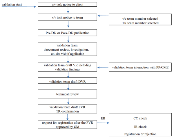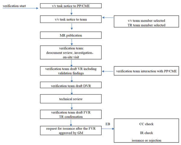 首先與項(xiàng)目參與方簽訂項(xiàng)目審定合同,在項(xiàng)目參與方遞交相關(guān)文件(包括PDD)之后,CEC正式開(kāi)始審定工作。審定過(guò)程,CEC需要完成的工作有:對(duì)PDD進(jìn)行公示、文件審查、現(xiàn)場(chǎng)評(píng)審、完成初始審定報(bào)告、完成最終審定報(bào)告并提交給CDM執(zhí)行理事會(huì)(CDM-EB)。EB在收到最終審定報(bào)告后,將公示報(bào)告,公示期結(jié)束后,如無(wú)其他問(wèn)題,對(duì)項(xiàng)目進(jìn)行正式注冊(cè)。