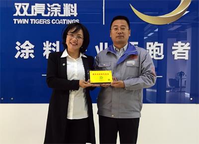 中環聯合認證中心授予武漢雙虎涂料有限公司“攜手共促綠色發展”榮譽稱號