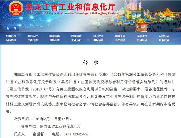2019年3月11日,黑龍江省工業和信息化廳發布黑龍江省工業固廢綜合利用評價機構名單,中環聯合認證中心(以下簡稱CEC)成功入圍。