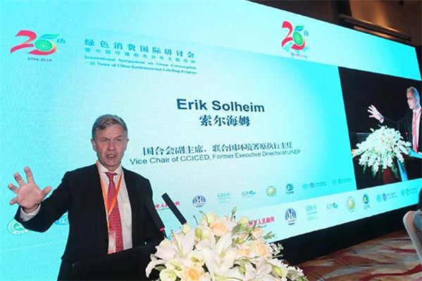 國合會(huì)副主席、聯(lián)合國環(huán)境署原執(zhí)行主任索爾海姆發(fā)表題為“可持續(xù)消費(fèi)與生態(tài)文明”的特邀報(bào)告。索爾海姆在特邀報(bào)告中講到,隨著全球化進(jìn)程的不斷深入,共謀全球生態(tài)文明、建設(shè)清潔美麗世界是推動(dòng)構(gòu)建人類命運(yùn)共同體的關(guān)鍵舉措,符合世界綠色發(fā)展潮流和各國人民共同意愿。他提出了四個(gè)方面關(guān)注,即關(guān)注經(jīng)濟(jì)社會(huì)發(fā)展實(shí)現(xiàn)從量到質(zhì)的轉(zhuǎn)化;關(guān)注從傳統(tǒng)經(jīng)濟(jì)到循環(huán)經(jīng)濟(jì)模式轉(zhuǎn)變;關(guān)注形成產(chǎn)品轉(zhuǎn)向服務(wù)的升級(jí)模式;關(guān)注從棕色經(jīng)濟(jì)向綠色經(jīng)濟(jì)轉(zhuǎn)型。