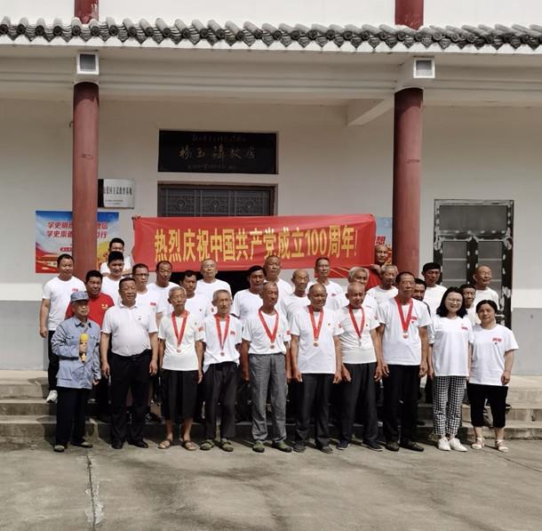 7月1日一大早,馮家林早早來到村委會,幫忙連接直播信號、調(diào)試投影設(shè)備,張羅著給老黨員們換上T恤衫。7點左右,雄壯的國歌聲響起,鮮艷的五星紅旗在隨州南邊山區(qū)這個小村莊冉冉升起。接著,馮家林與支部黨員共同觀看了慶祝建黨百年大會直播。并為村里6名老黨員佩戴上上級黨組織頒發(fā)的“光榮在黨50年”紀(jì)念章,聽包村干部講主題黨課,參觀了抗戰(zhàn)老兵楊玉林的故居。