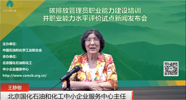 7月8日上午,中環聯合認證中心張小丹總經理出席中國石油和化學工業聯合會(以下簡稱“石化聯合會”)主辦、北京國化石油和化工中小企業服務中心(以下簡稱“國化中心”)承辦的碳排放管理員職業能力建設培訓并試點職業能力水平評價新聞發布會并代表碳排放管理員職業能力建設基地進行了致辭。