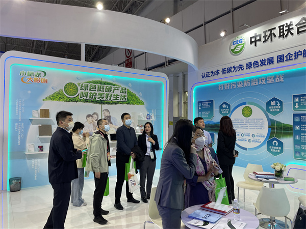 展臺上,中環(huán)聯(lián)合集中展示了中國環(huán)境標志產(chǎn)品認證以及降碳、減污、擴綠、增長等環(huán)保綠色技術(shù)服務(wù)在助力環(huán)境污染防治、節(jié)能減排、推動綠色生產(chǎn)與消費等方面的成果與典型案例,提供了興業(yè)助企的環(huán)保服務(wù)綠色通道。據(jù)《中國環(huán)境標志產(chǎn)品績效評估報告》(2022版)顯示,截至目前,生態(tài)環(huán)境部共頒布了132項環(huán)境標志標準,現(xiàn)行有效標準109項,累計認證企業(yè)7000余家,已有208余萬種規(guī)格型號的產(chǎn)品獲得了中國環(huán)境標志認證,產(chǎn)品種類涉及印刷、家具、建材、紡織品、電子產(chǎn)品、汽車、日化產(chǎn)品、包裝等行業(yè),形成了每年5萬多億產(chǎn)值的綠色市場。以2021年為例,環(huán)境標志產(chǎn)品認證有效證書數(shù)超過1.2萬張,有5000余家企業(yè)、208萬種型號通過了環(huán)境標志認證,為市場提供了大量優(yōu)質(zhì)的綠色環(huán)保產(chǎn)品,優(yōu)化了市場綠色產(chǎn)品的供給能力,支撐了我國綠色消費政策的實施,積極推動了低碳綠色的生產(chǎn)和生活方式的形成。