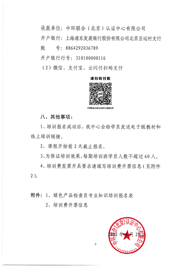 附件下載:綠色產(chǎn)品認(rèn)證檢查員專業(yè)知識(shí)培訓(xùn)報(bào)名表 及 培訓(xùn)費(fèi)開票信息.pdf