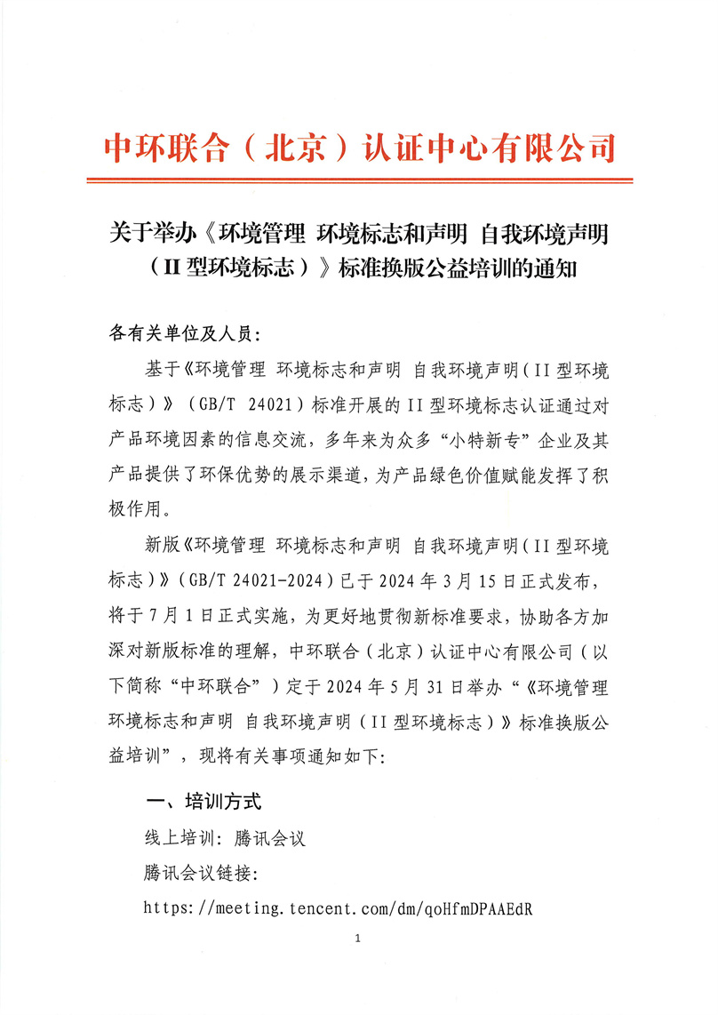 《環(huán)境管理 環(huán)境標(biāo)志和聲明 自我環(huán)境聲明(II型環(huán)境標(biāo)志)》標(biāo)準(zhǔn)換版公益培訓(xùn)
